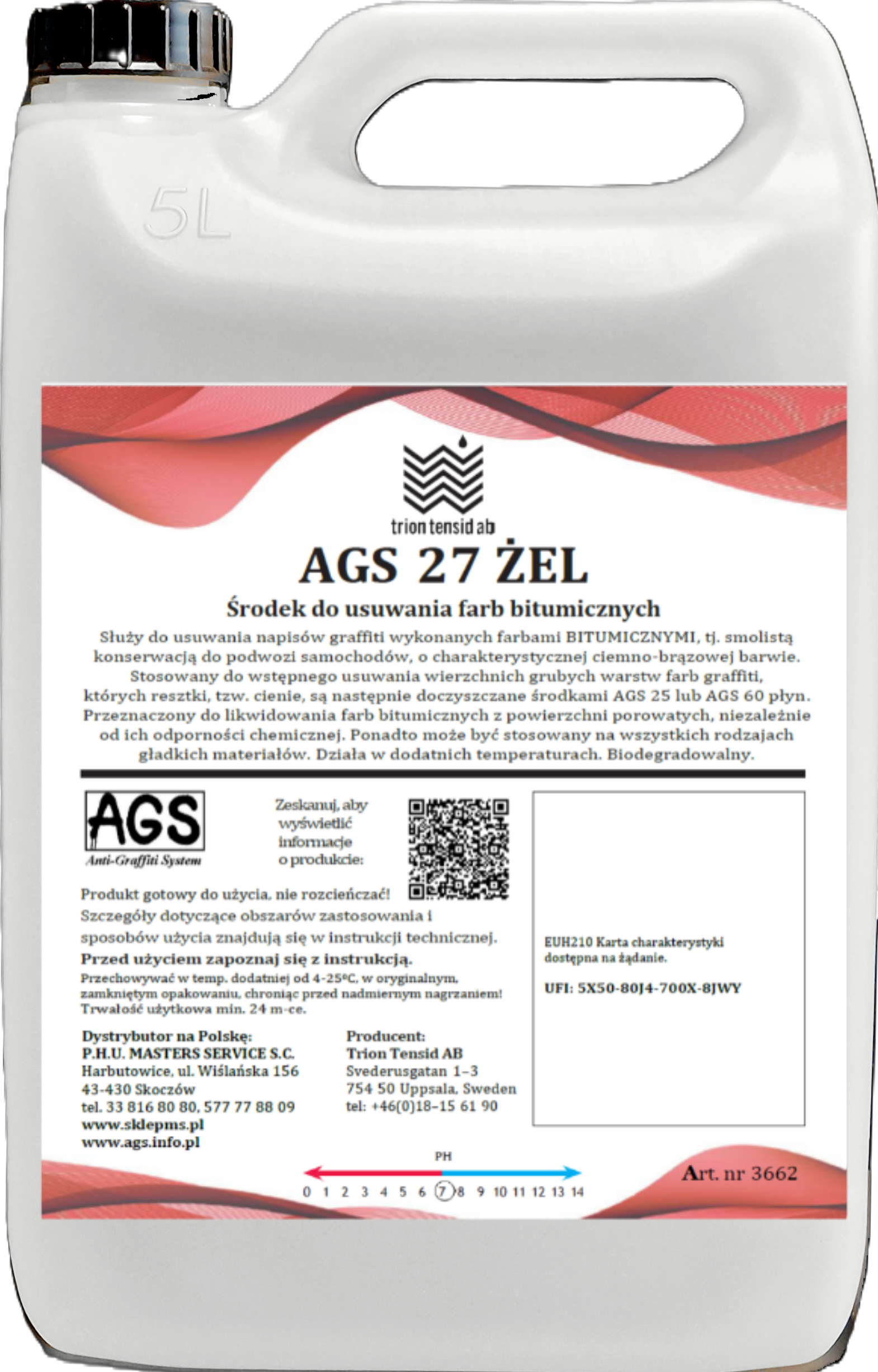 AGS 27 żel do wstępnego usuwania graffiti, które zostało wykonane farbami bitumicznymi (do konserwacji podwozi samochodów)